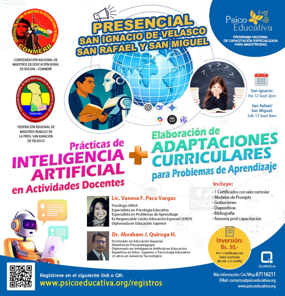 🇧🇴 INTELIGENCIA ARTIFICIAL Y ADAPTACIONES CURRICULARES PARA SAN IGNACIO, SAN RAFAEL Y SAN MIGUEL PRESENCIAL 🇧🇴